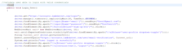 in with valid credentials and then another method ensuring the user is not
