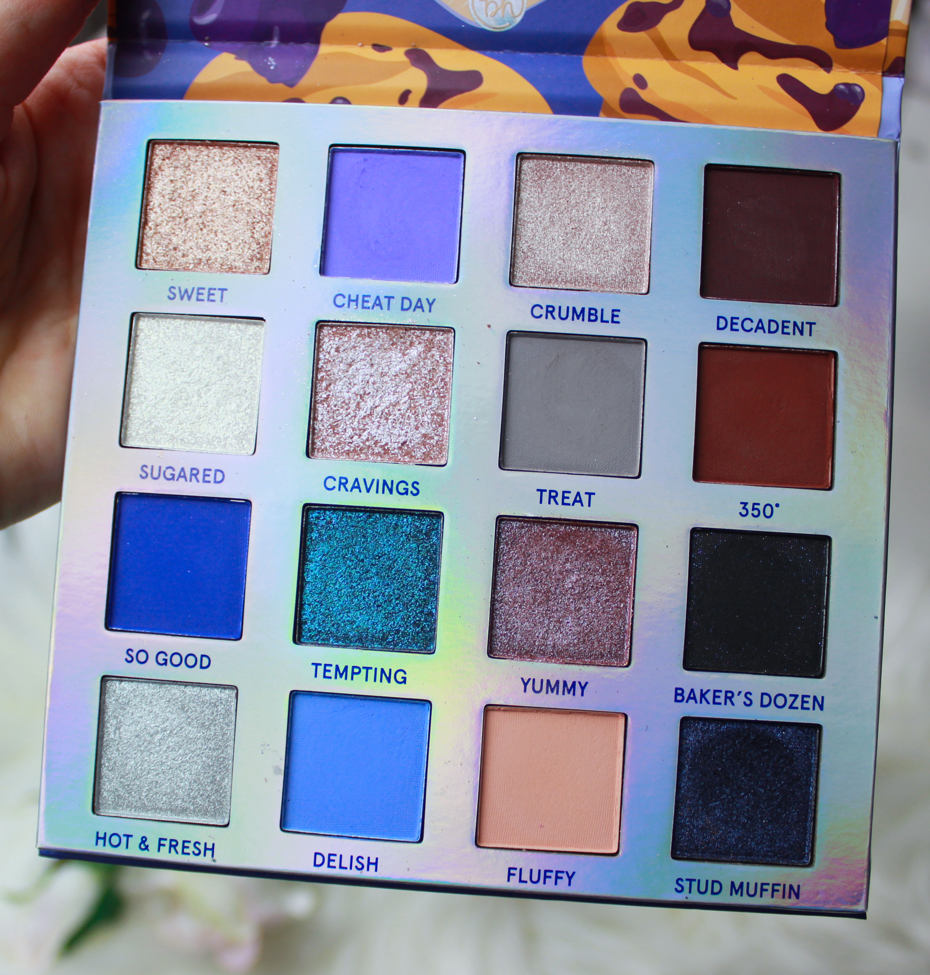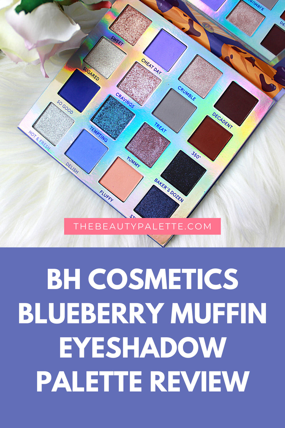 BH Blueberry Muffin eyeshadow palette retails at $18 (and that is without any additional coupons/discounts) and offers 16 shades with a nice mix of mattes and shimmers. Some shimmers have more of a metallic finish some are more sparkly and glittery but overall they show up on the eyes beautifully. It may seem like Blueberry Muffin palette is mainly a blue-toned eyeshadow palette and not enough everyday friendly but I actually found it to be super wearable because of the neutral mattes combined with flattering shimmers like Sweet, Cravings, and Yummy.