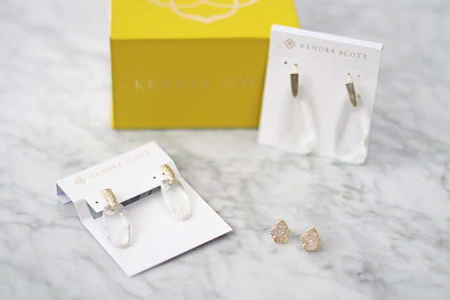 Nails are sort of a given on nights outs, but I hesitate to accessorize due to my tendency to lose things. Thanks to my twin sister, however, I�ve been converted to Kendra Scott! I have been known to have a strong preference for (overpriced) designer costume jewelry but I have to say, Kendra Scott is new go-to brand for earrings. People randomly drop me compliments whenever I wear them, and I have to admit, the quality is consistently good and the price point very reasonable.�