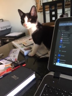 We have received an update from Gus's new owner. As you can see he is settling in very well, and is determined on assisting with the work on the laptop....