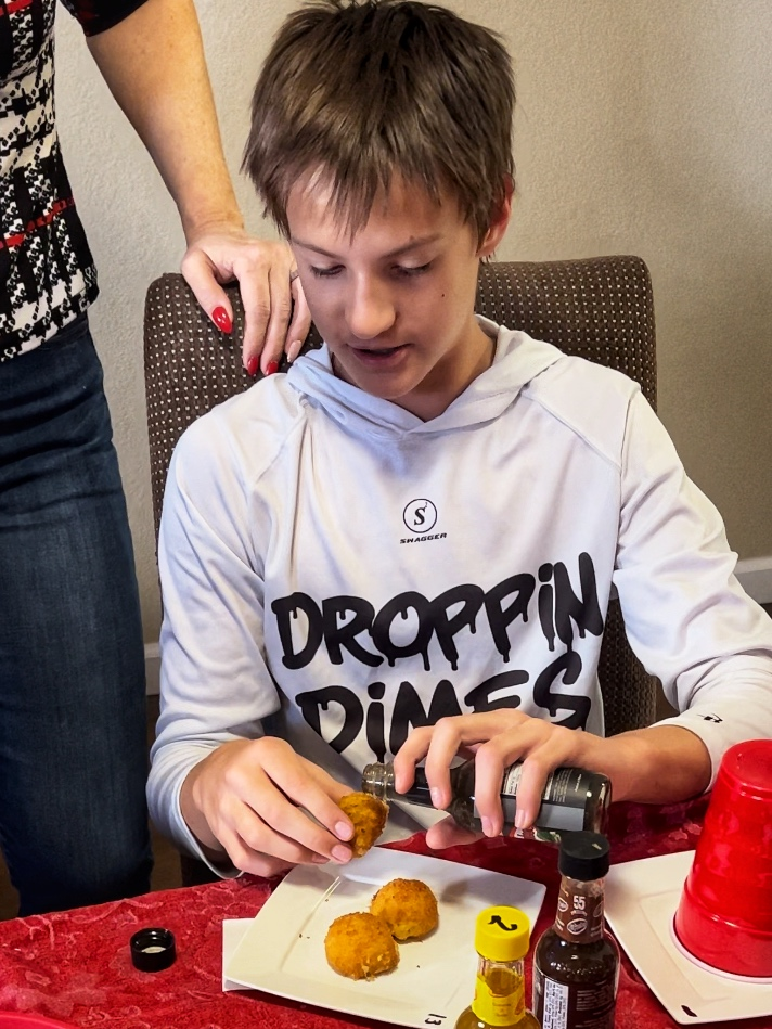 My son went first and got a delicious match with mac n cheese balls, paired with a classic Chile Habanero Hot Sauce.� But things got intense quickly.� One of the other boys had to pair gummy candies with El Yucateco�s Habanero Coffee Hot Sauce, while one of the others had to pair raw broccoli (something NO teen boy wants to eat) with El Yucateco�s hottest flavor, Habanero Ghost Hot Sauce.� He ended up licking the hot sauce off the broccoli and throwing the broccoli over his shoulder!