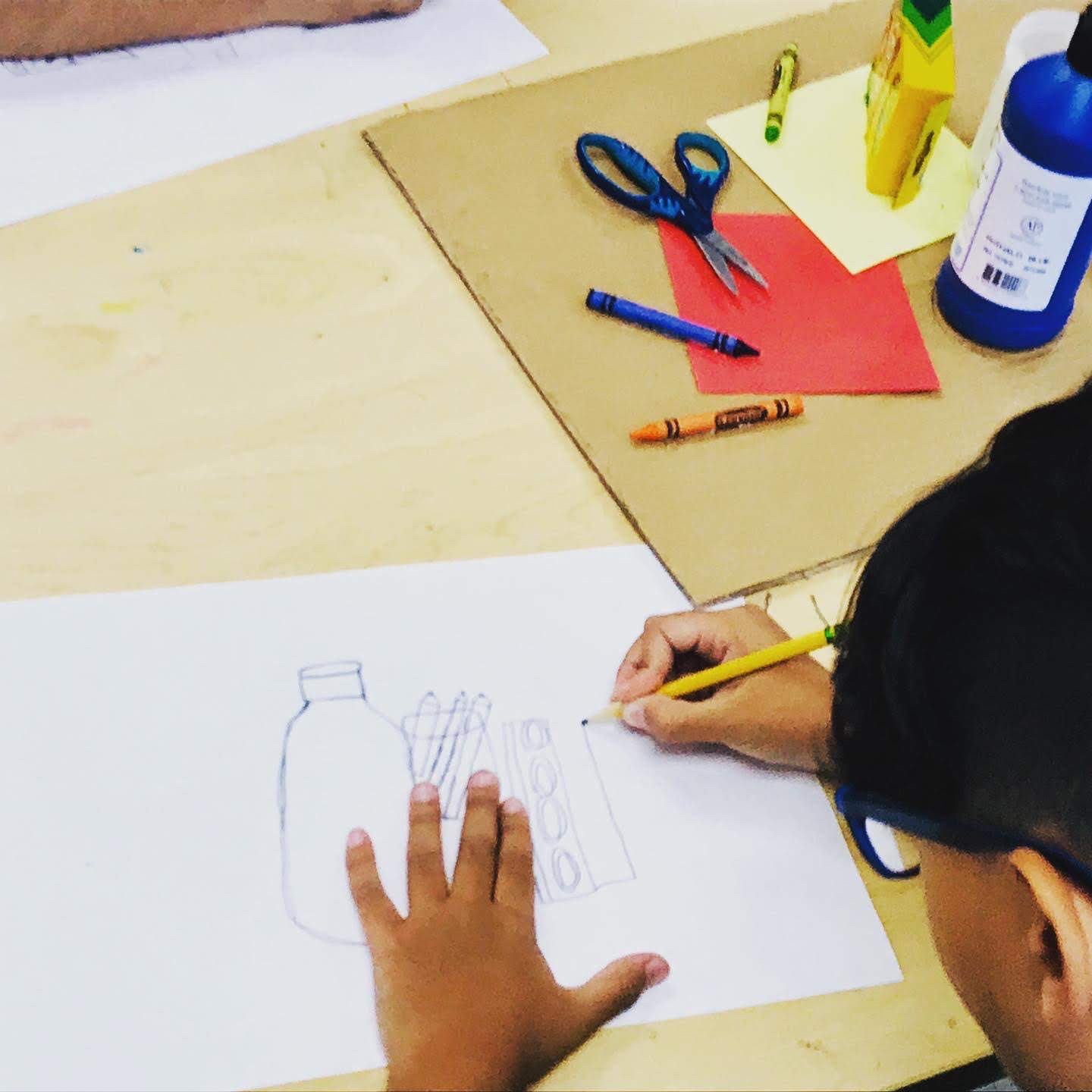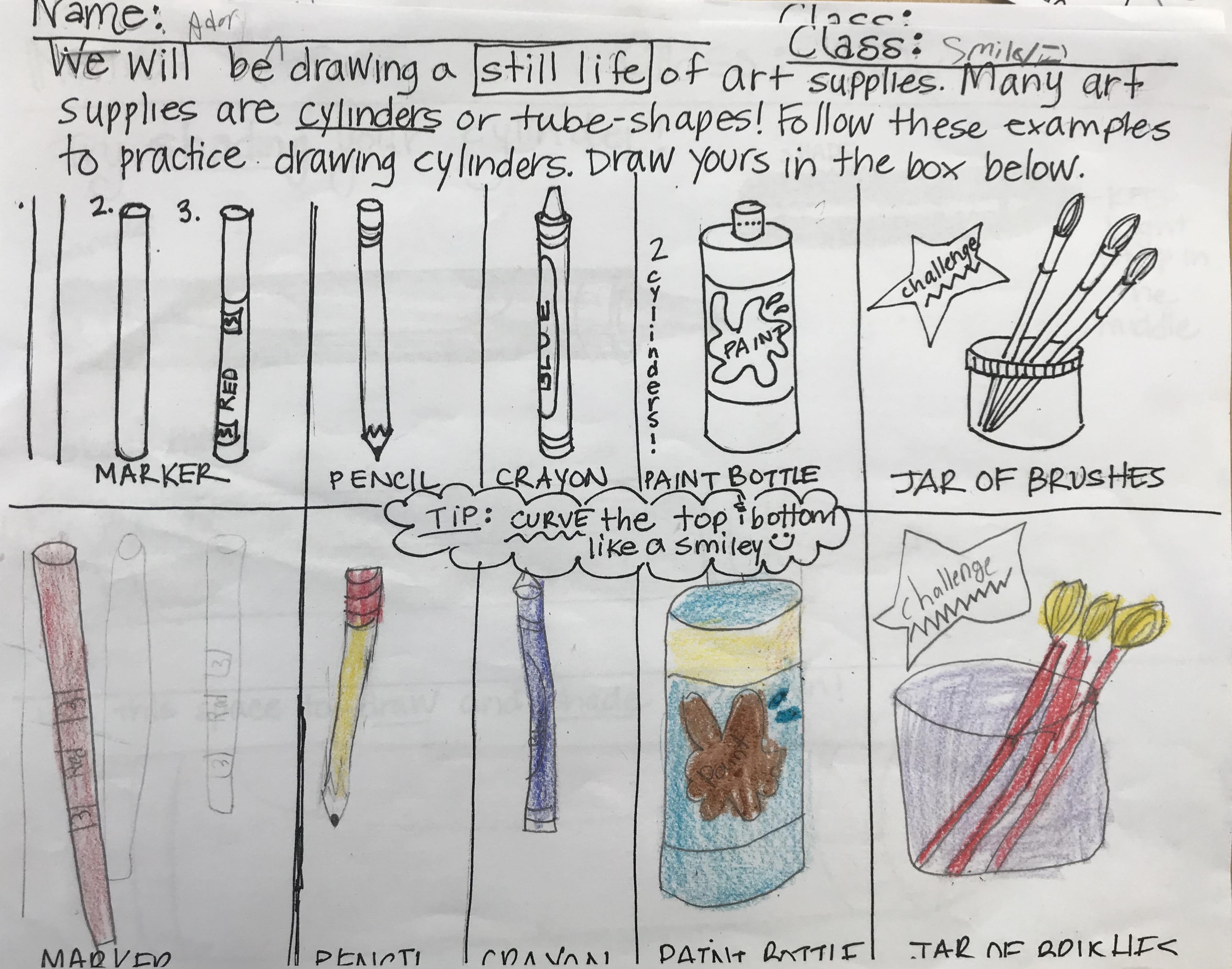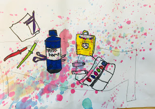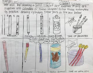 This school is new to me this year and my fourth graders are (obviously) new to me too. It was a bit of an assessment for me as well.� I decided to use art supplies as our still life subject, because I felt they were pretty easy to draw, colorful and well...abundant.