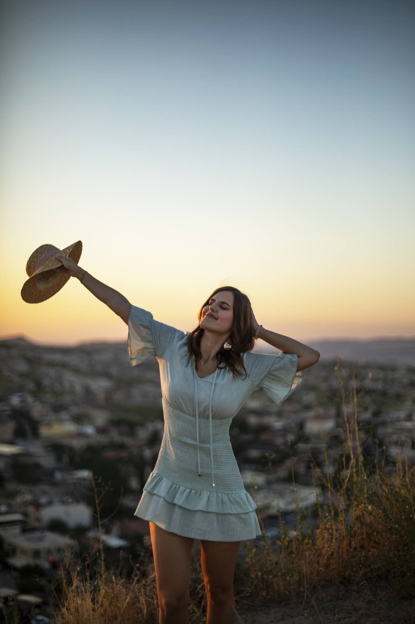 ENG: Hello from Cappadocia! In spite that there is no balloons here due to current circumstances, this place still remains magical and breath-taking, and always feels like home for me. Wearing mini mint dress and enjoying one more sunset.Thanks for stopping by!
