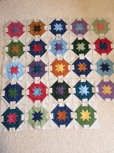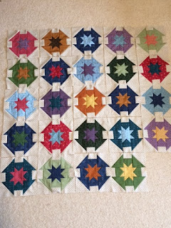 And I am now counting down to the next sewing retreat with friends, in a months time.� This photo of my Kim Diehl quilt (see calls it Pie in the Sky - from her Simple Graces book) is on my hit list of outstanding UFO's that need finishing.� I made this blocks many moons ago, but was unhappy with the colour mix, but could not put my finger on it.��