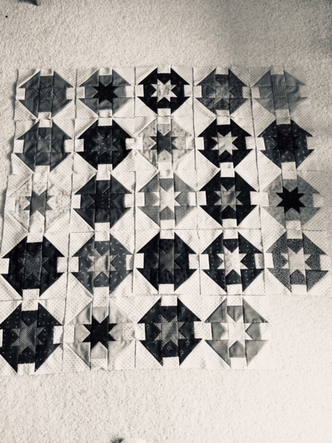 I thought it might be the lack of light or dark - so took a black and white photo.� Decided that was not the problem, but that I needed more variety and colour!� So now I am cutting and prepping blocks ready to take away in a months, for five days of sewing and fun :)