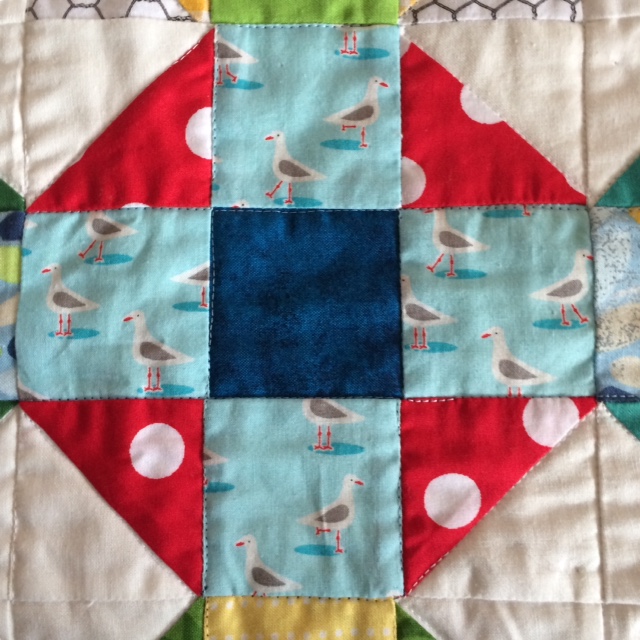 There was one lonely different sea gull print in the bottom of my scrap box that was begging to join this quilt.�