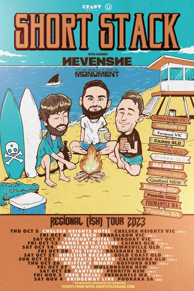 Alongside releasing new music, also following on from their triumphant 2022 release Maybe There's No Heaven, Short Stack have also been busy of late elegantly trolling the media, releasing their debut album Stack Is The New Black on vinyl for the first time ever and, as of this week, launching into their Regional(Ish) Tour which will take the group across the country to travelled and not-so-travelled locales. And if that aint' enough Stack action for you this year, Short Stack are also locked in to appear at Good Things Festival this December along with Fall Out Boy, Limp Bizkit, Devo, Slowly Slowly and an army of others.
