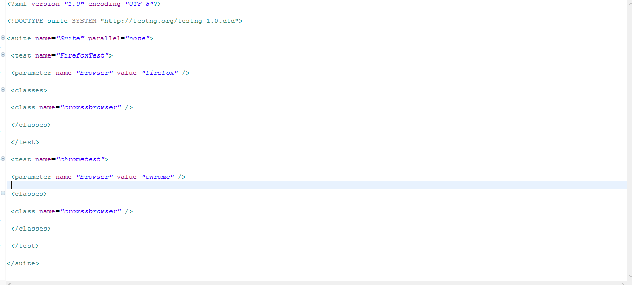 up. Using TestNG XML file we have passed parameters as different browsers on