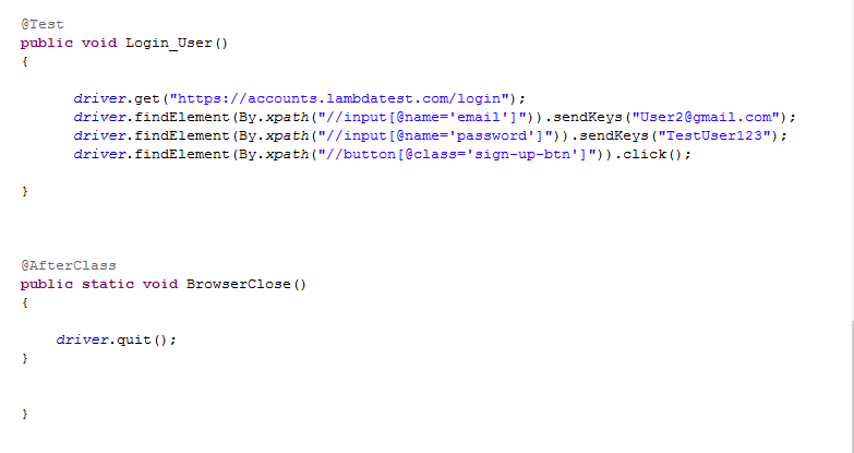 the other pieces of your code. Similarly, an @AfterClass annotation helps you