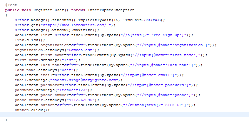 Xpaths also where the XPath values can be pulled from excel also. Here the key