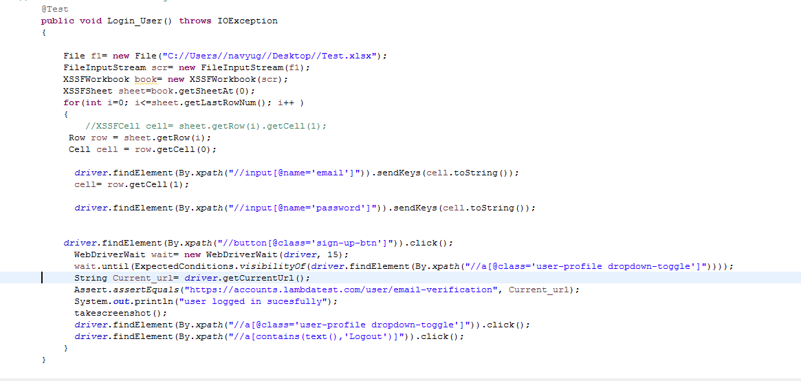 pulled from excel for different login credentials. The same can be extended for
