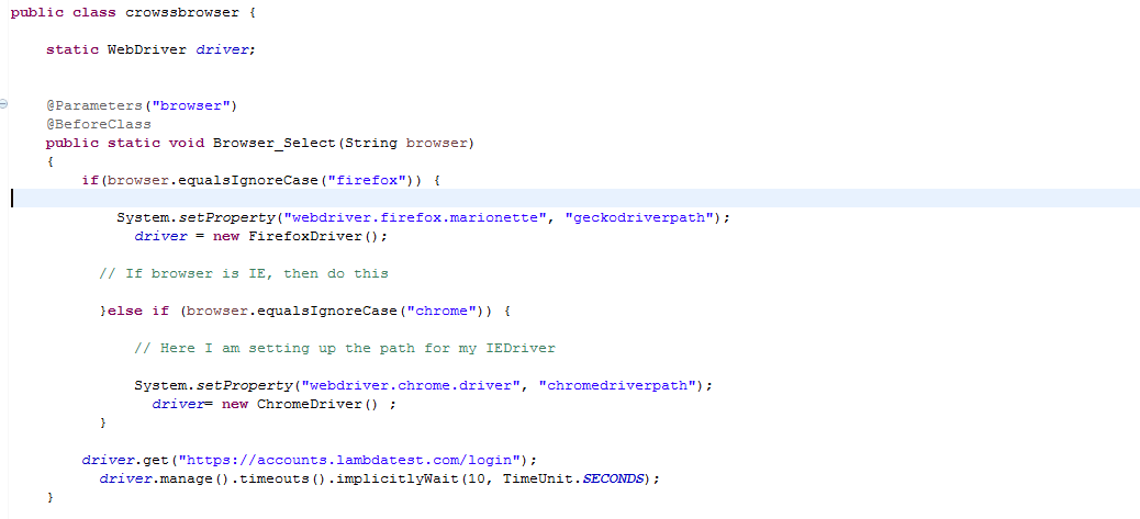 which takes a browser as a parameter where different browsers drivers are set
