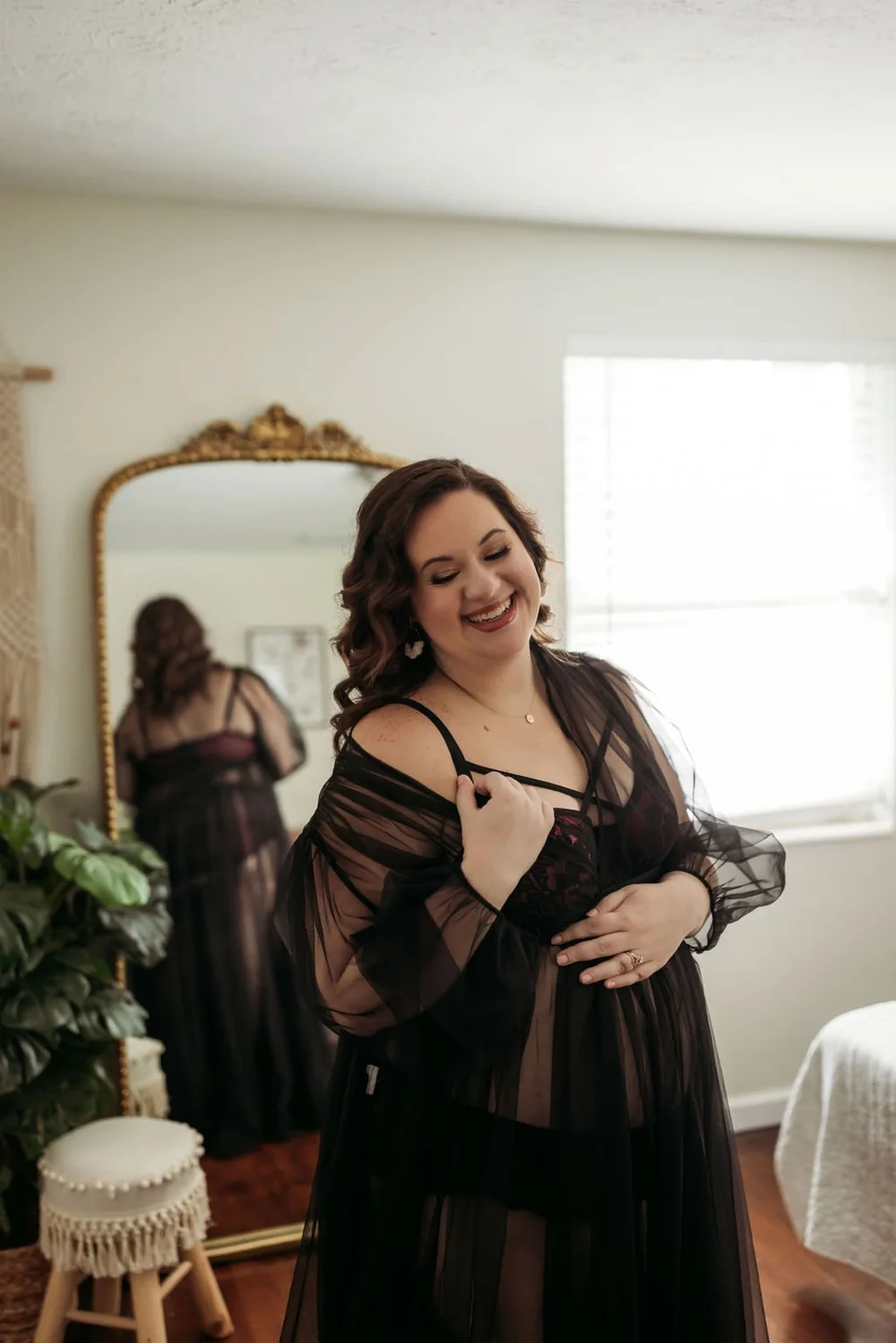 You might be wondering, what exactly happens during a maternity boudoir session? Well, it's quite similar to a regular boudoir experience with a few adjustments to accommodate your beautiful baby bump.