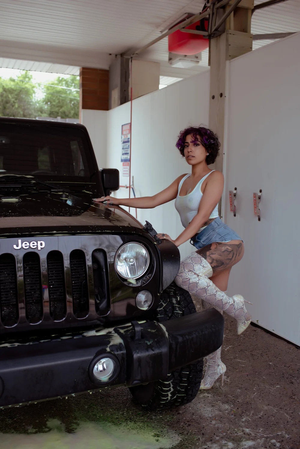 Imagine your Jeep as more than just a ride - it's your photoshoot playground! With its rugged vibe and cozy insides to a starry night in a top-down Jeep. The Jeep's tough vibes go hand-in-hand with the intimacy of a boudoir shoot. It's like opposites attracting in the coolest way possible. Pairing the adventurous Jeep spirit with the soft, intimate boudoir feels!