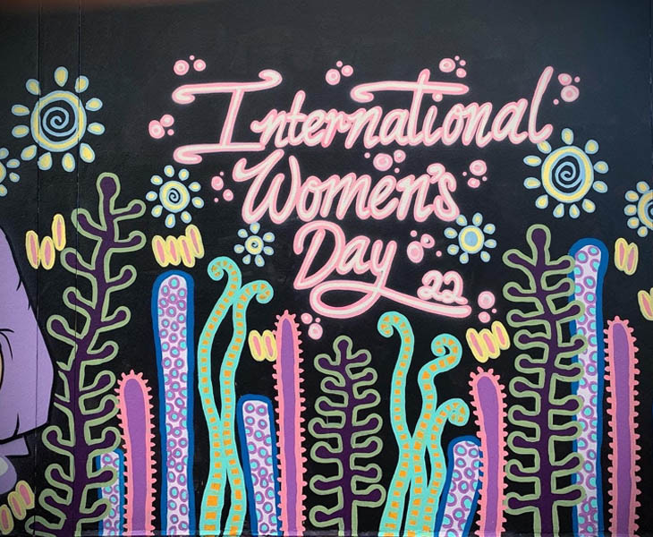 [ Street Art 2022 created by - Ms Snaps worked with a local Larrakia woman, Mikaela who is an amazing artist who supported and collaborated on the #BreakTheBias wall. ]