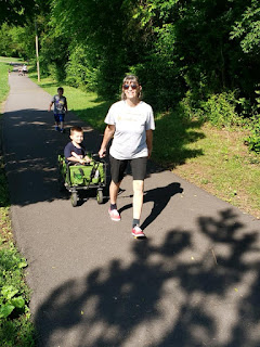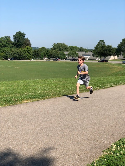 "Is Baby Mae coming to my 5k?" Mae is the little sister to Tillery's friend Jax, who we met in Cincinnati. When Jax passed away over 3 years ago Tillery lost a playmate so she is thrilled to be able to play with his new sister Mae. Currently, Mae is really mostly interested in eating her own hand but Tillery said "she eats her fingers so cute!"
