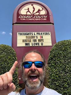 This year, we met CourtSouth Ron, who randomly sent me an email the night before to ask if we needed volunteers. I didn't respond because I was a bit overloaded on Sat morning so Ron just showed up and asked what he could help with. By the end of the event, Ron was family. He put out Hero Signs, talked to Tillery's family about her story, cheered for runners, and took selfies with Til. When he left us on Saturday morning, Ron went to CourtSouth, the gym where he works and changed the sign to honor our girl and many other kids we talked about that day.