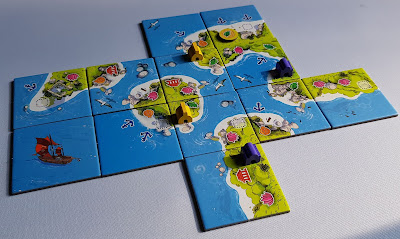 The first impression of Small Islands is like a maritime Carcassonne - it has the familiar square tiles, with land and sea edges that must be matched as you build a central landscape together throughout the game. Like many gamers, Carcassonne was one of our first modern board games and it's one that has really stood the test of time, with a number of expansions having also been crammed into our base game box over the years.