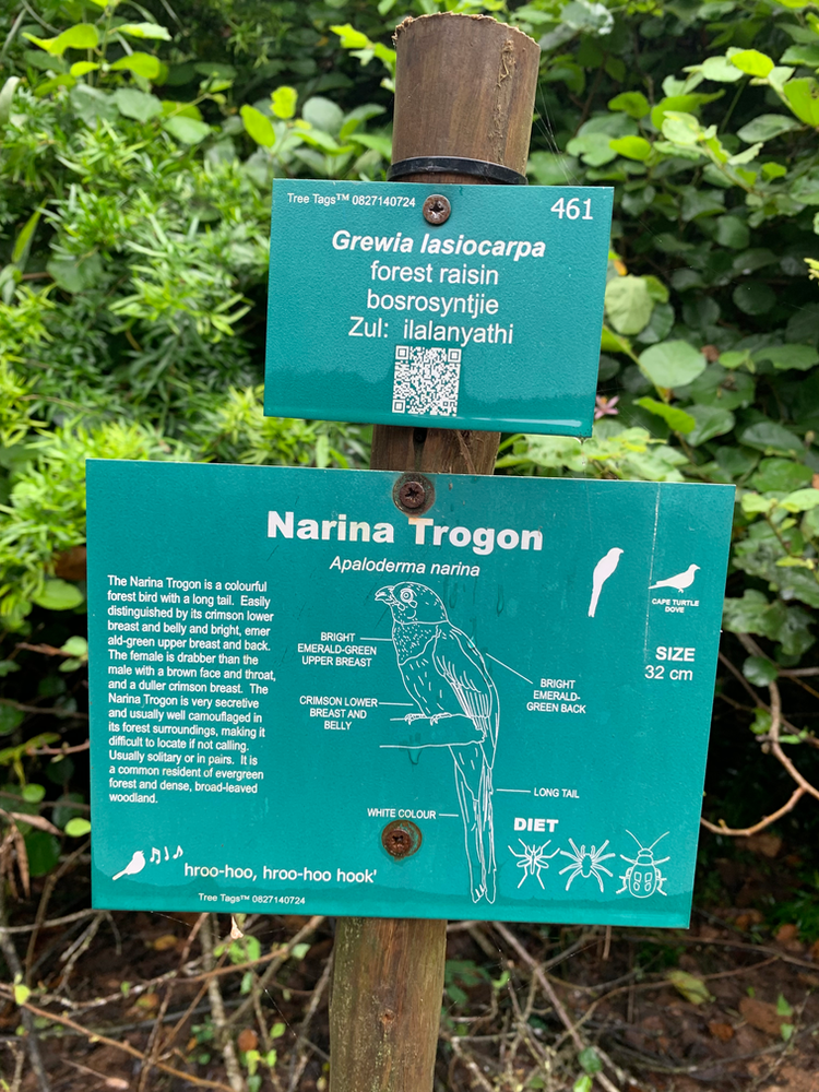 We arrived at Umdoni Park in Pennington excited about what the morning would offer. This stunning conservation area, positioned amongst a golf course, is one of the best birding locations on the KwaZulu Natal South Coast (possibly even in KwaZulu Natal). The park is named after the Umdoni trees that are found throughout the estate. The park has a wide range of trails that wind through the well-kept conservation area, as well as a fantastic Conservation Centre with clean toilets and a seating area. The birding is good with species such as Green Malkoha, Narina Trogon, Brown-scrub Robin, Crowned Eagle, Scaley-throated Honeyguide, Kynsna Turaco, and White-starred Robin in winter.
