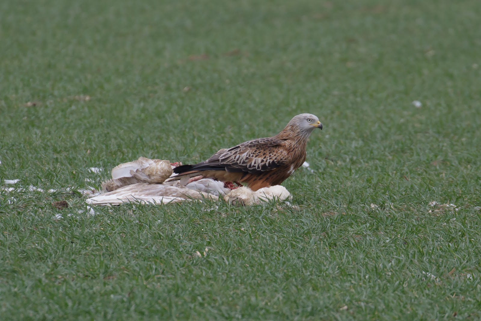 Red Kite eating Mute Swan, 17 March 2018. Not the strangest snack I've seen a kite eating here; in about 2006 I saw one eating the remains of a Barn Owl!