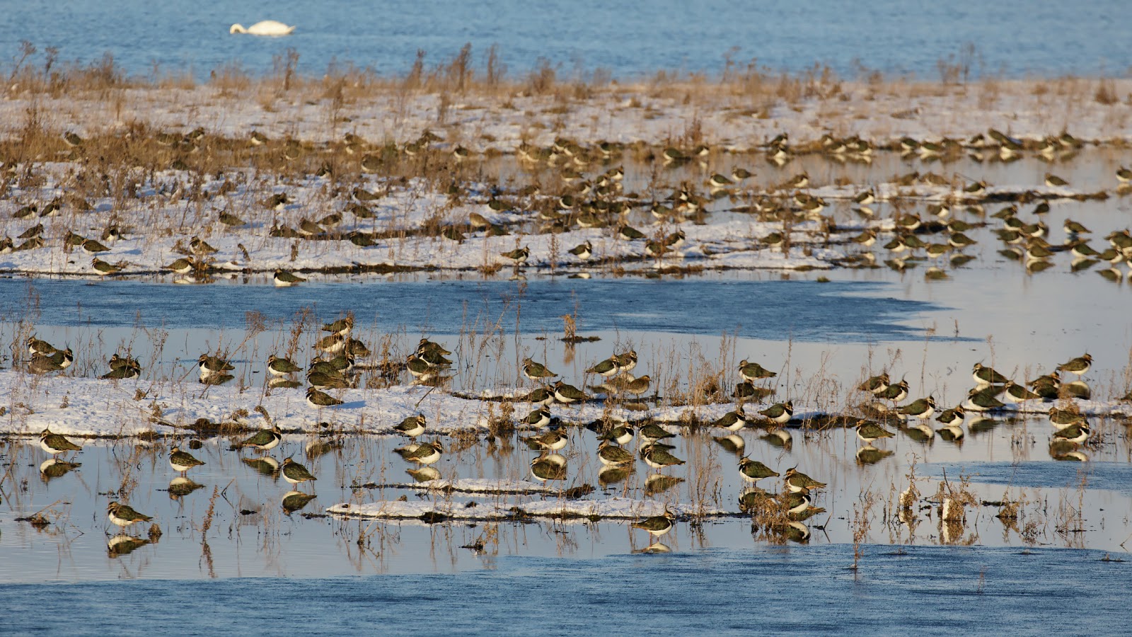 Northern Lapwings and a couple of European Golden Plovers on 27 February - these birds have since long departed as South Lincolnshire has become a freezer.