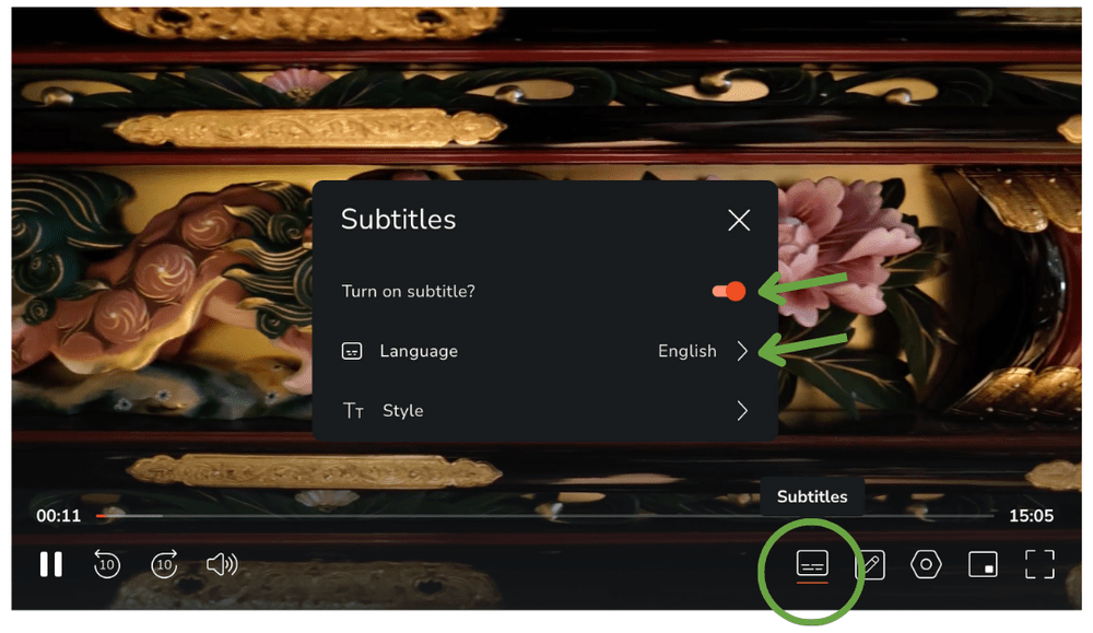 Hopefully Google Translate did a good job helping us say we are excited to announce Spanish and Japanese subtitles are available on all our videos! You can globally turn on/off subtitles and select your preferred language. Just pull up the menu bar on any video by hovering near the bottom of the lecture video. Make sure the �Turn on subtitles?� switch is toggled on. You can click the arrow to select your preferred language, and even adjust the style. The settings will be saved in the system for all videos.