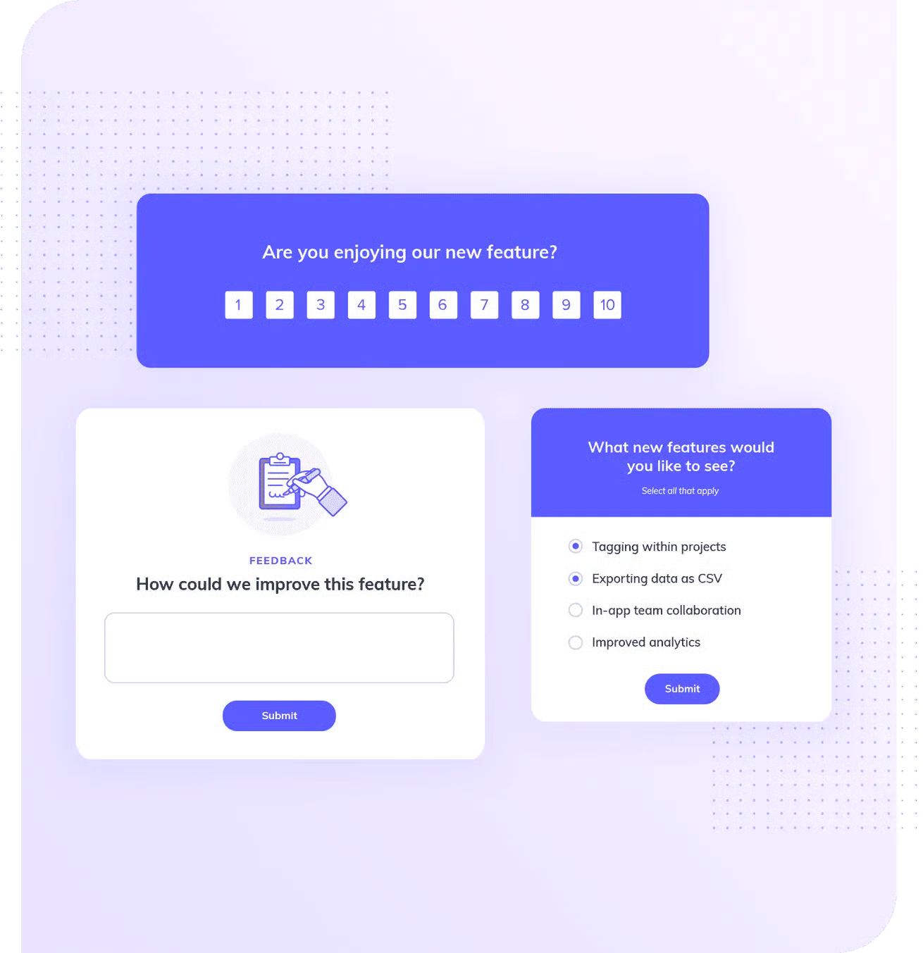 Responses can be reviewed by page, feature, or user behavior, which helps teams study how customers react during different parts of the product experience. This type of in-app feedback is often used to understand usage friction, onboarding clarity, and feature adoption.