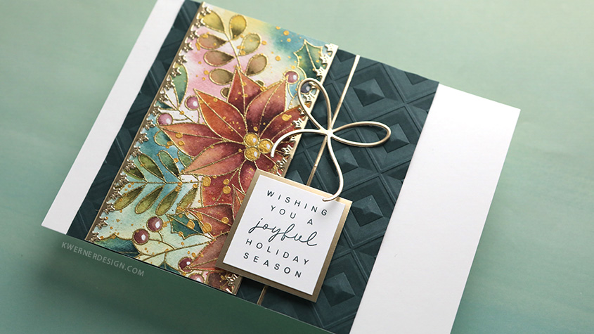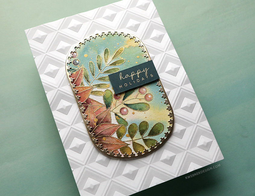 Happy Friday! Today is Day 7 of the Holiday Card Series. For these cards, I wanted to try out one of Altenew’s Watercolor Compacts. I swatched both of them (Deep Muse and Moody Brights), but eventually decided to use the Deep Muse palette. I watercolored my Winter Greenery Background, and then cut the painting in