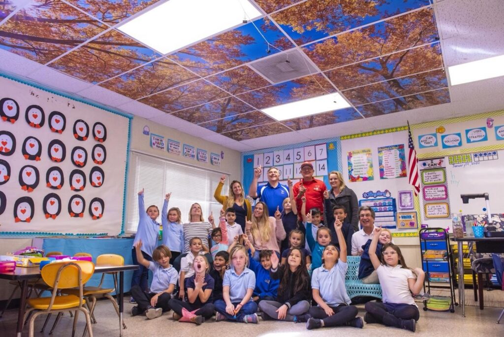 Today, the program installs high-resolution “tree ceiling” murals designed specifically for learning spaces. These ceilings are now in 20 school districts across nine states, serving more than 10,000 students. The results are consistently powerful: students are calmer, more focused, and more excited to be in school. Teachers report measurable improvements in classroom culture and attention.