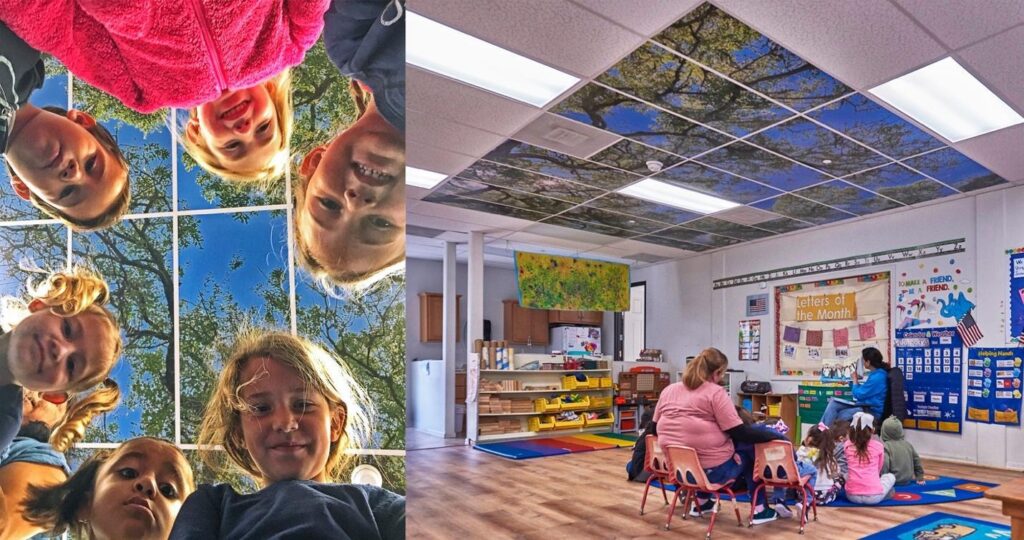 “The nature ceiling has brought a sense of calm, comfort, and safety to our classroom,” says first-grade teacher Kaylee Dickens in Kentucky. “It sets a peaceful tone the moment students walk through the door.” Ms. Dickens’ experience is echoed across districts in the United States.