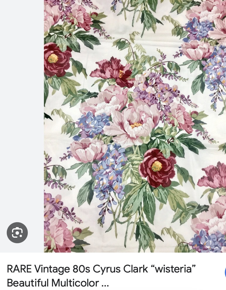 Delightful is a great way to describe this fabric- but other than it being vintage floral chintz, I didn’t know much about it. But, I had a simple way to figure it out. I took a close up photo of the pattern and did a google image search. Before I knew it, the exact manufacturer, name of the pattern and age popped up. At least according to the internet- this is a Cyrus Clark Wisteria pattern from the 1980’s apparently.