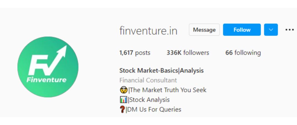 Finventure.in is a place where you can learn about the stock market for free. It provides you with a piece of detailed information on stats and shares amazing facts from time to time. It also does stock analysis and shares the information on the Instagram account which makes it one of the must-follow Indian stock market Instagram accounts.