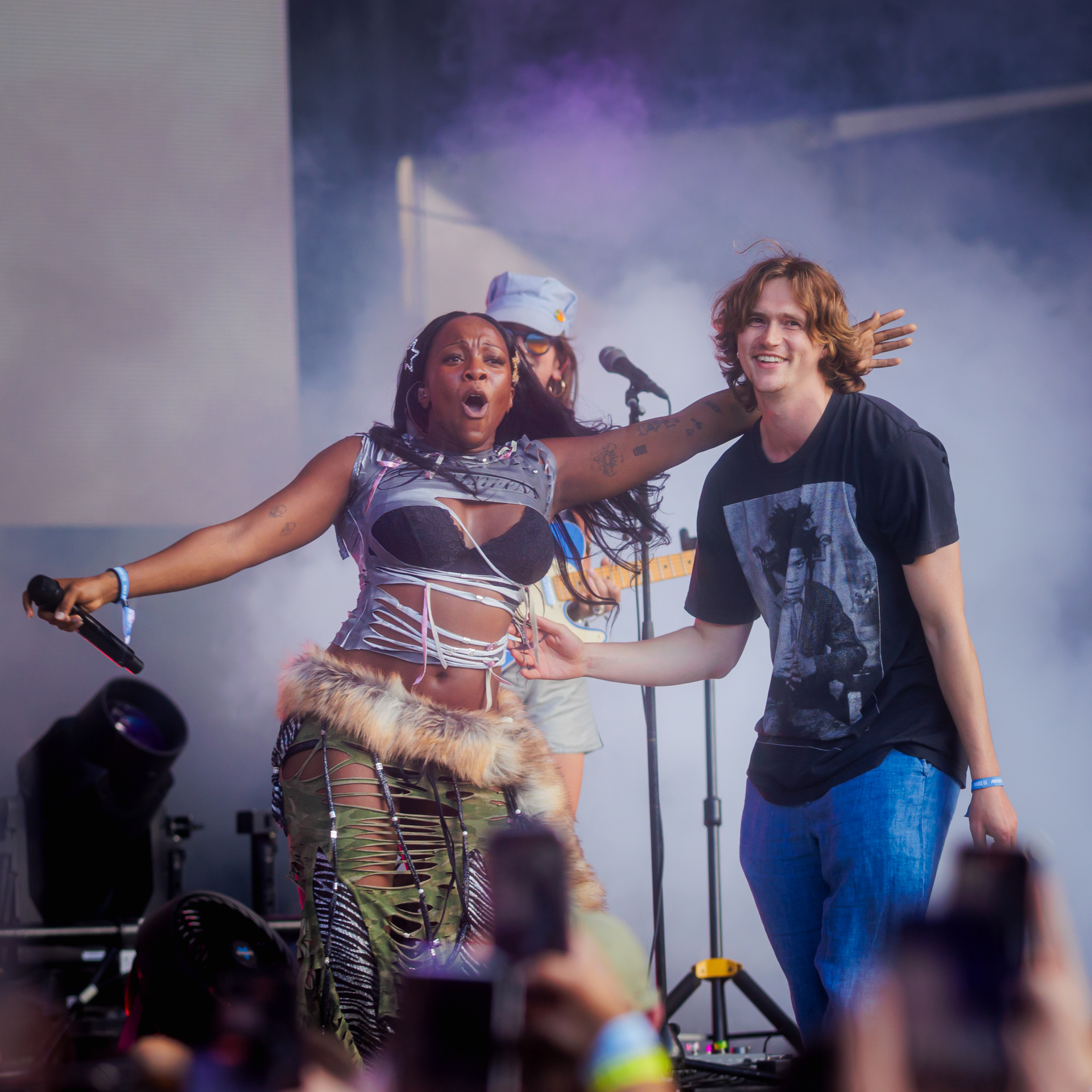 Sunday (1994) kicked off the day, followed by friend of LADYGUNN, Alemeda, who we met last month at Lollapalooza. She had the early crowd riled up, and teased an upcoming collaboration with the evening’s headliner, the swamp princess herself, Doechii. Michelle’s set was both upbeat and bittersweet, as this performance was one of their final as a group. Their synchronized dances and quippy lyricism has only gotten stronger over the years, and this strong performance served as a celebratory send off.