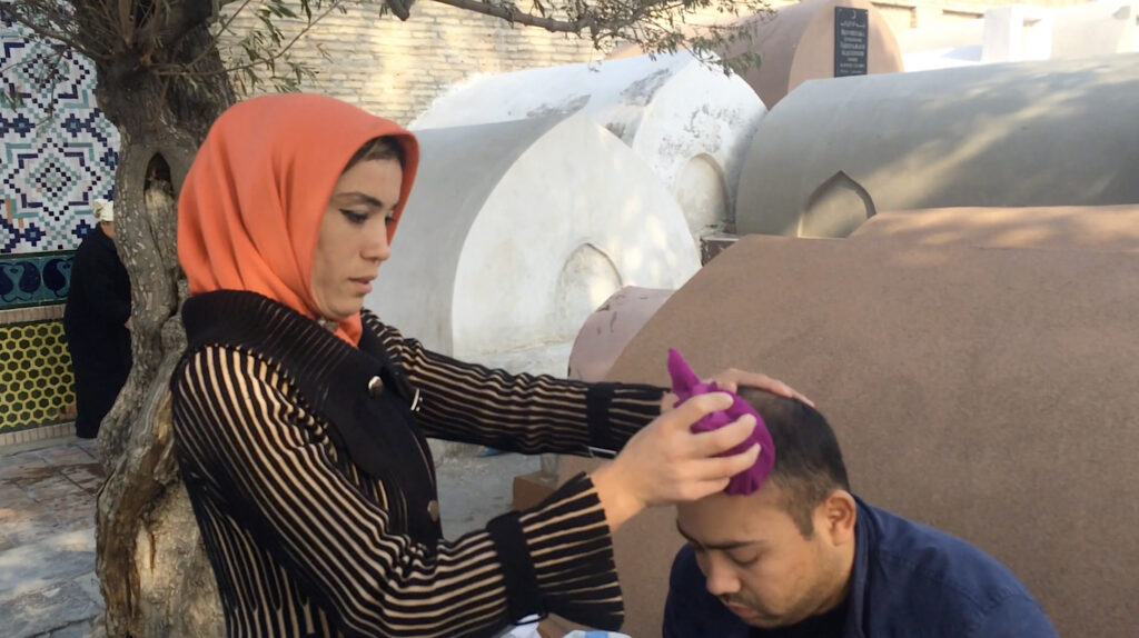 So, I carry a first aid kit that’s pretty thorough. It has prescription painkillers and antibiotics. I started this journey with some medical training. I went through a six-week course, embedded with the US Air Force, years ago. They kind of basically get EMT training. But also, I kind of put myself at the doorstep of local healers — and that’s everything from primary health care clinics and economically struggling economies that offer just really basic kind of interventions. And I must say, Carolyn, the treatment was incredible. I’ve been treated by shamans. I went to a spiritual cleanser in Uzbekistan. I wasn’t going there to seek help, but she asked me to see kind of if I, you know … she wanted to practice on me, and this was a woman named Shakhlo Teshabaeva in the old Silk Road town of Kokand in Uzbekistan in Central Asia. She had set up shop under a tree, outside the local cemetery, where she was rubbing a glass full of ashes on patients whose ailments weren’t being cured at the local hospital, right? So, people might go to the local hospital as a first recourse. But if it was a chronic illness or maybe even a very serious one that was getting worse and that wasn’t reacting to modern medicine, they would go to Shakhlo. She would recite prayers over them and kind of rub a glass full of ashes over their bodies and then basically burp out, I mean, it sounded like a belch, the evil spirits that were inhabiting these patients. And she did that to me, too.